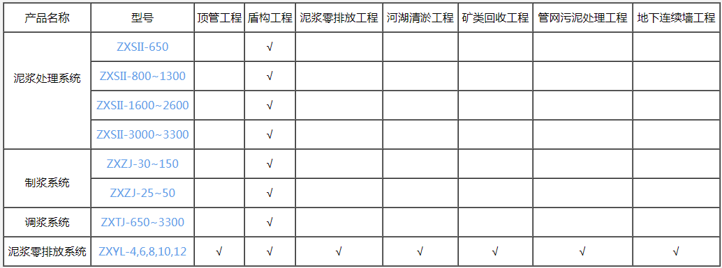 1、自主研发的ZX系列泥水处理系统。全面支持隧道掘进机施工。能满足800-1300m3/h盾构泥浆处理并循环利用要求。